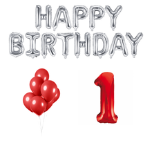 Verras iemand op zijn of haar 1e verjaardag met dit prachtige ballonpakket in rood en zilver. Perfect voor een feestelijke sfeer!