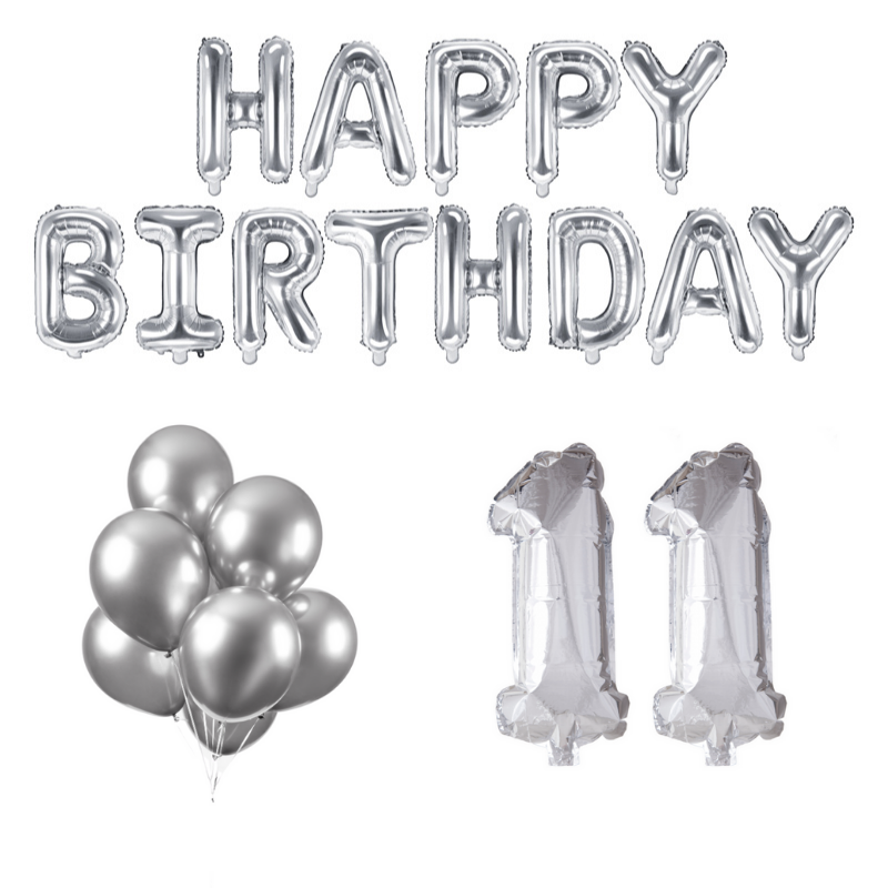 11 jaar Verjaardag Versiering Ballon Pakket zilver