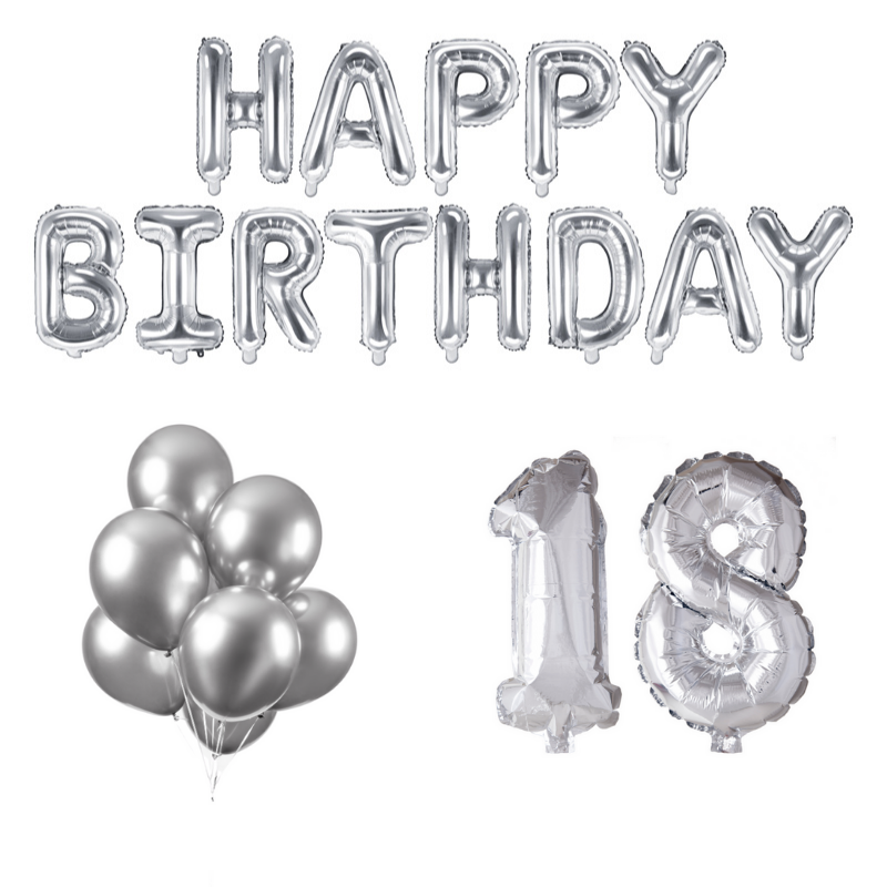 18 jaar Verjaardag Versiering Ballon Pakket zilver