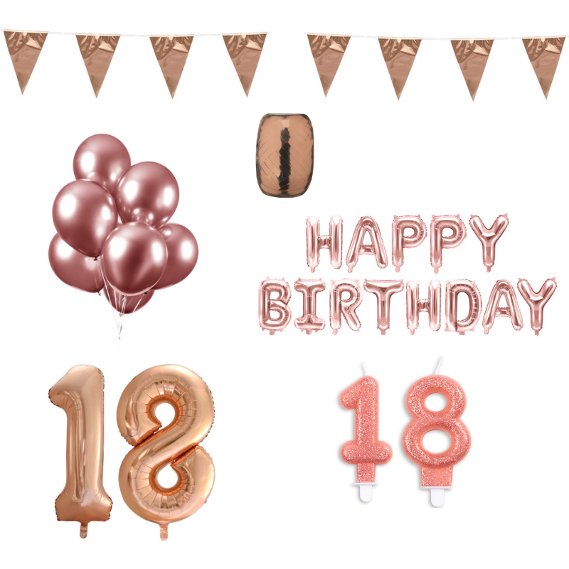 18 jaar Verjaardag Versiering Pakket Rosé Goud