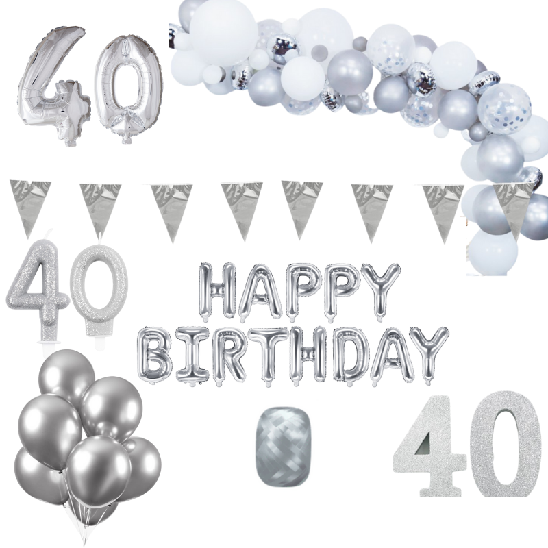 40 jaar Verjaardag Versiering Pakket Zilver XL