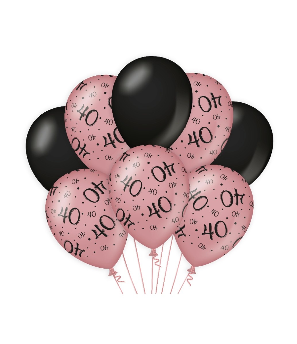 40 jaar verjaardag ballonnen rose goud en zwart 8 stuks