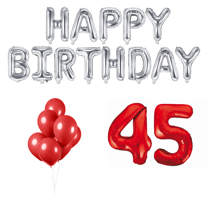 45 jaar verjaardag versiering ballon pakket rood & zilver