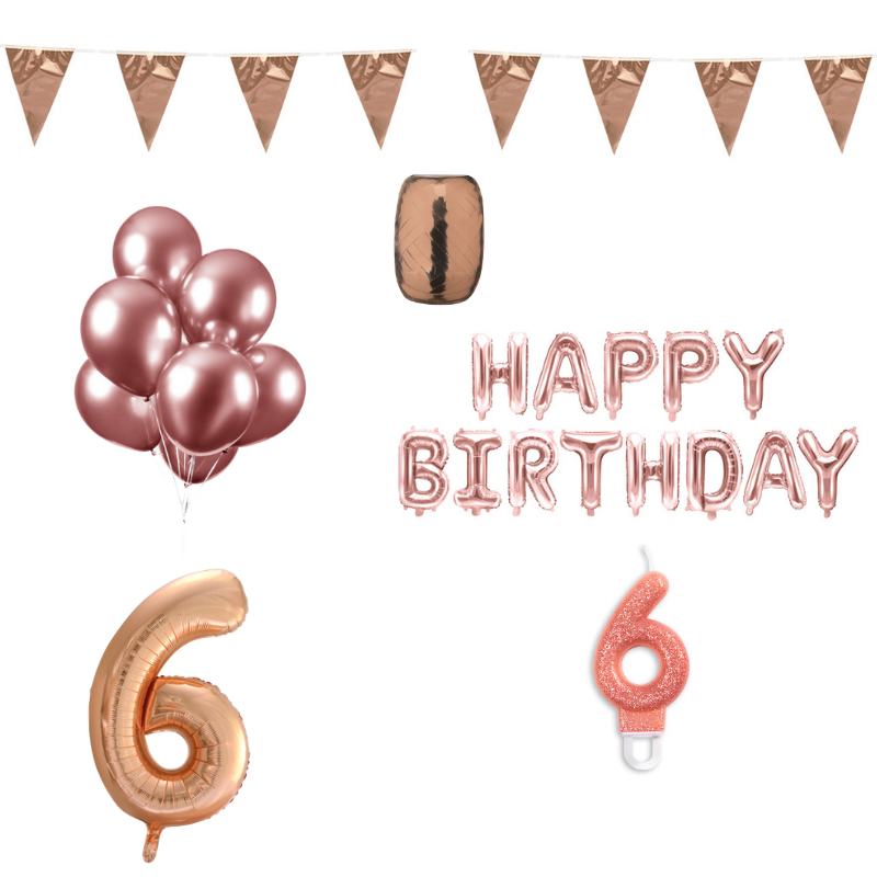 6 jaar Verjaardag Versiering Pakket Rosé Goud
