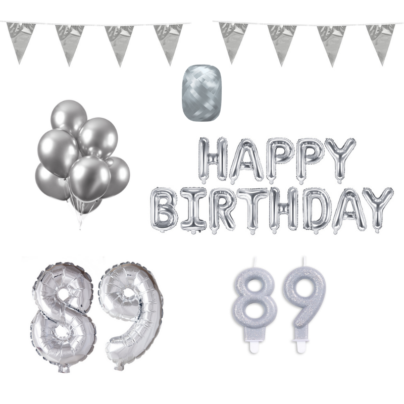<h2>89 jaar verjaardag versiering pakket zilver</h2>
