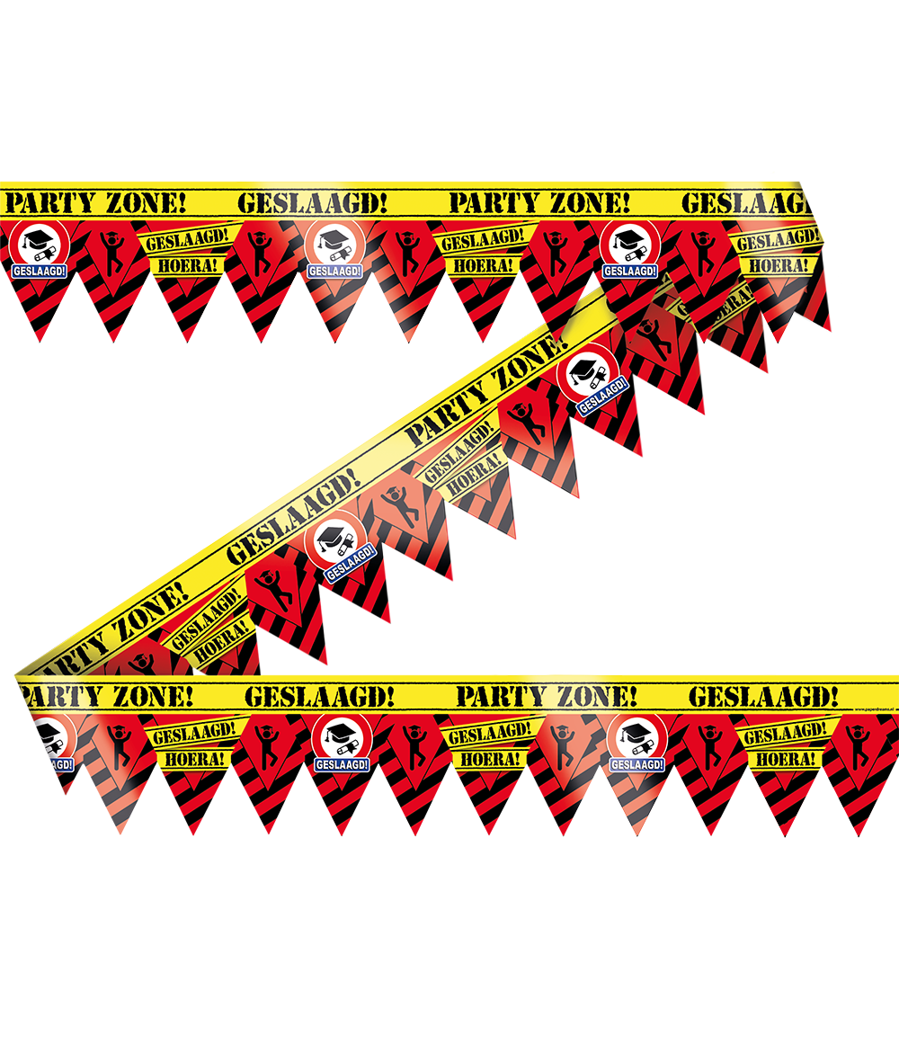 Is er iemand geslaagd? Dit moet natuurlijk groots gevierd worden! Met dit vrolijke afzetlint van 12 meter lang en 7,5 cm breed maak je elke ruimte feestelijk. Perfect om de geslaagde in het zonnetje te zetten.