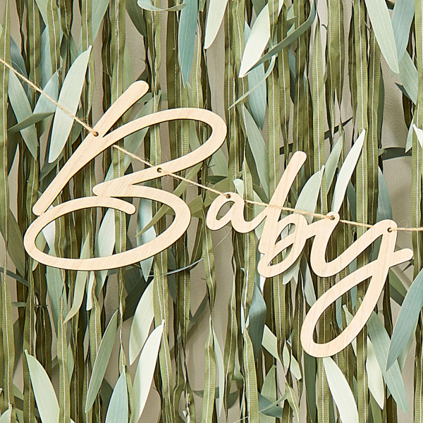 De Baby Shower slinger uit de Botanical Baby collectie van Ginger Ray is gemaakt van hout. De natuurlijke uitstraling doet het goed op ieder babyfeestje! Ingetogen, warm en neutraal, geschikt voor iedere babyshower of kraamfeest.