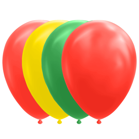 Ballonnen in de kleuren rood, geel en groen - Afmeting van 30cm - In de verpakking zitten 10 ballonnen.