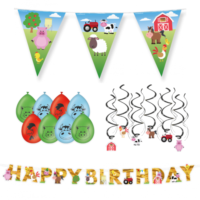 - 8 ballonnen met afbeeldingen van een kip, varken en koe