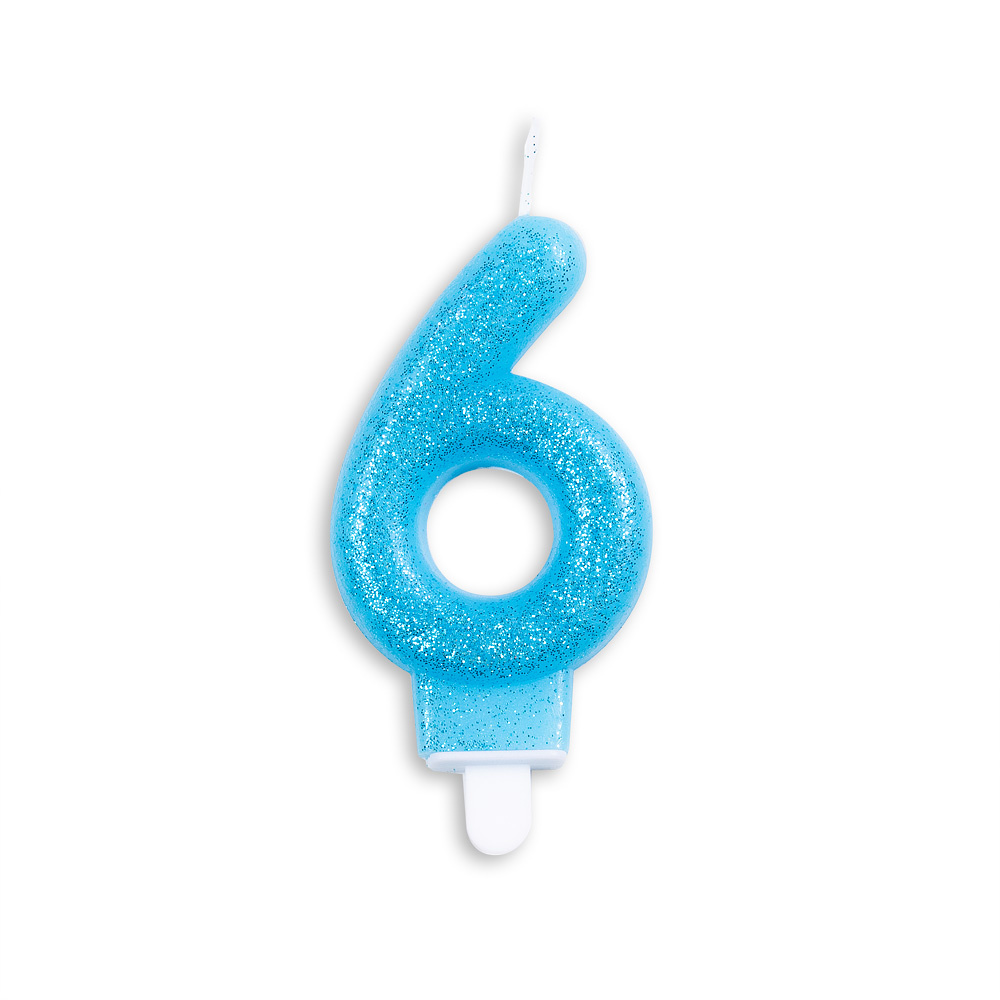 Maak elke verjaardagstaart speciaal met deze glitter blauwe cijferkaars nr. 6. Perfect voor een feestelijke decoratie. Bestel nu en voeg een sprankje magie toe aan je feest!