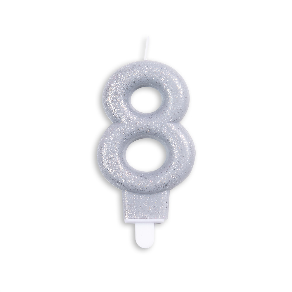 Maak je verjaardagstaart extra feestelijk met deze zilveren glitter cijferkaars nr. 8. Perfect voor elke leeftijd en gelegenheid. Bestel nu en geef je feest een sprankelende touch!