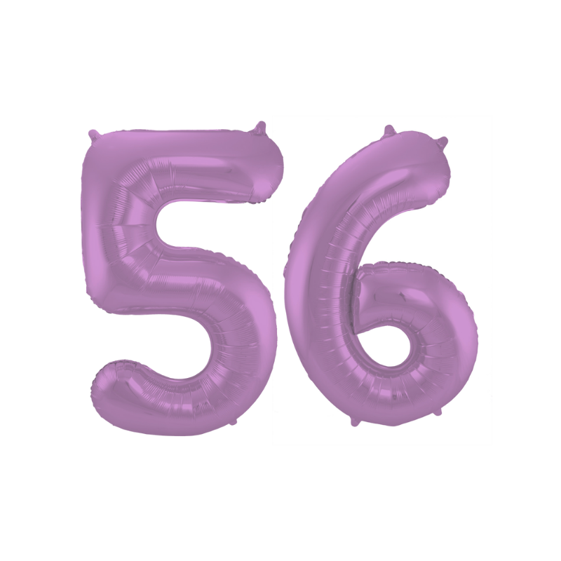Folieballon cijfer 56 metallic paars 86cm, leeg bezorgd met rietje. Deze XL folieballon met cijfer 56 is erg leuk voor een feestje, verjaardag, jubileum of bruiloft.