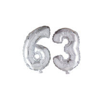 Folieballon cijfer 63 Zilver 66cm, leeg bezorgd met rietje. Deze XL folieballon met cijfer 63 is erg leuk voor een feestje, verjaardag, jubileum of bruiloft.
