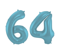 Folieballon metallic pastel blauw mat cijfer 64 voor verjaardag, feestje, jubileum, bruiloft of als decoratie