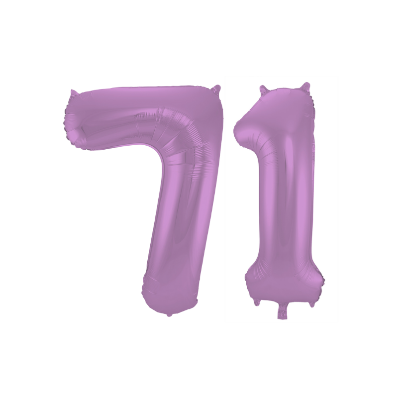 Ben je op zoek naar een mooie cijferballon voor een verjaardag, huwelijk of feestje. Dan haal je met deze metallic paarse folieballon cijfer 71 een mooie ballon binnen. De ballon wordt standaard leeg bezorgd, wel met een rietje om de ballon op te blazen. Opgeblazen heeft deze cijferballon in XL formaat een afmeting van ca. 86cm.