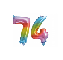 Maak elk feest compleet met deze regenboog folieballon cijfer 74 van 41cm! Perfect voor verjaardagen, jubilea en bruiloften. De ballon wordt leeg geleverd met een rietje om eenvoudig op te blazen. Bestel op werkdagen voor 16:00 en ontvang je ballon dezelf