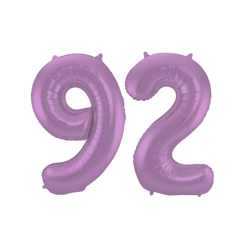 Ben je op zoek naar een mooie cijferballon voor een verjaardag, huwelijk of feestje. Dan haal je met deze metallic paarse folieballon cijfer 92 een mooie ballon binnen. De ballon wordt standaard leeg bezorgd, wel met een rietje om de ballon op te blazen. Opgeblazen heeft deze cijferballon in XL formaat een afmeting van ca. 86cm.