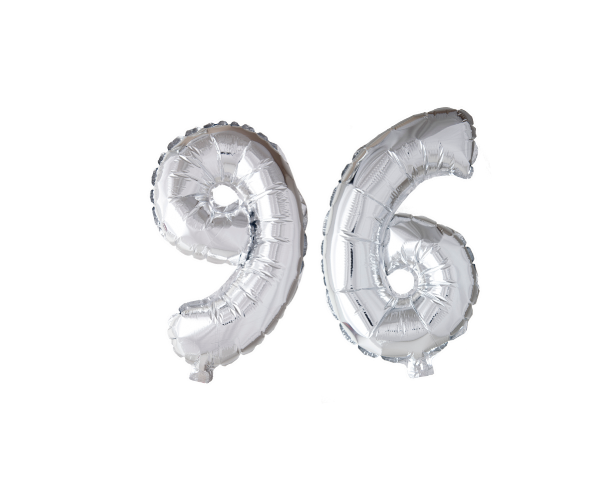 Folieballon Zilver cijfer 96 voor verjaardag, feestje, jubileum, bruiloft of als decoratie