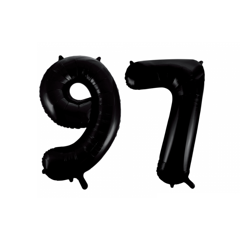 Folieballon cijfer 97 zwart 41cm, leeg bezorgd met rietje. Deze folieballon met cijfer 97 is erg leuk voor een feestje, verjaardag, jubileum of bruiloft.