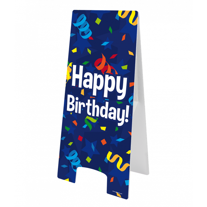 Warningsign met happy birthday cartoon thema - 58cm hoog - 24cm breed