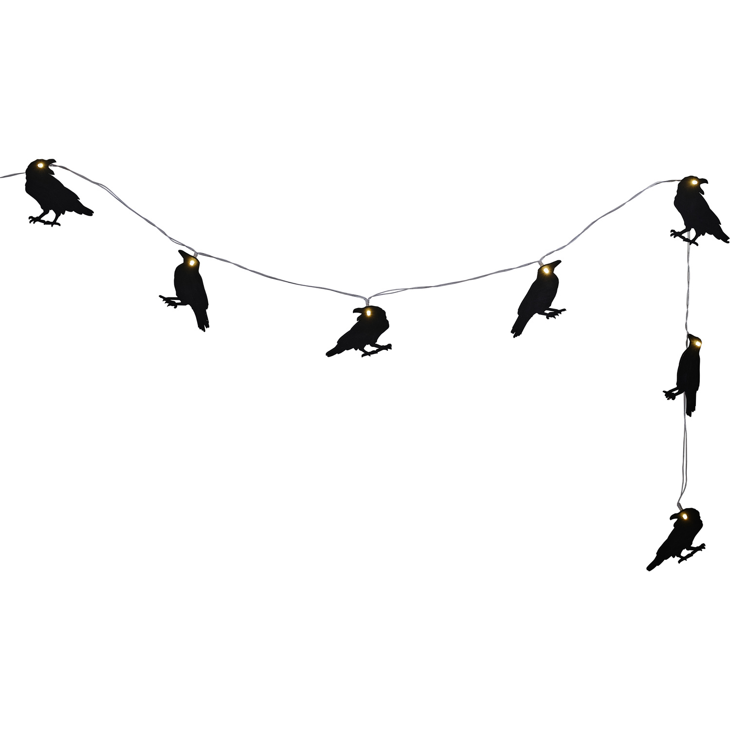Kraaien slinger met lichtgevende ogen - Halloween; Kraaien Hout Halloween met lichtgevende ogen Deze spannende slinger neemt een enge sfeer met zich mee doordat de ogen van deze kraaien licht geven