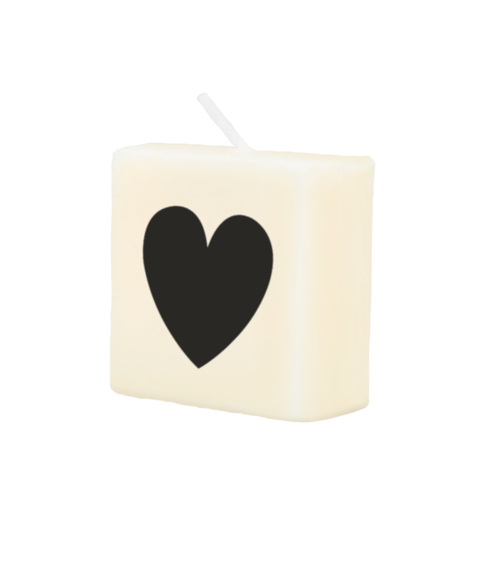 Letter Kaarsje - hartje zwart - letterkaarsje met een afmeting van 4x4 cm. Leuke en mooie kleine decoratie kaars. Maak zelf de woorden en cijfers combinatie die je wilt