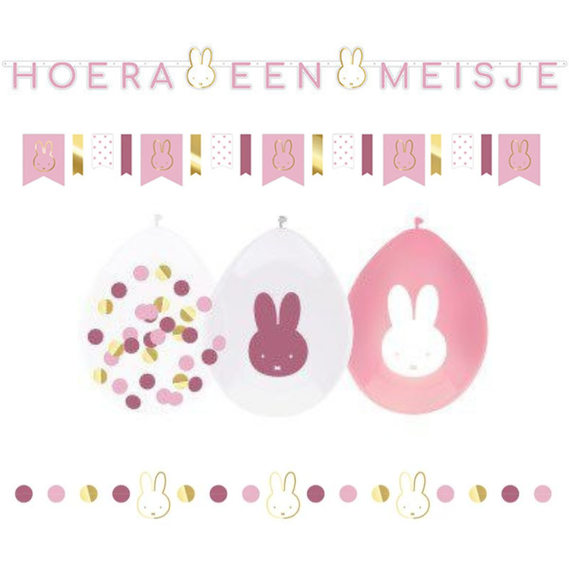 Versiering pakket voor een geboorte met hoera een meisje thema van Nijntje