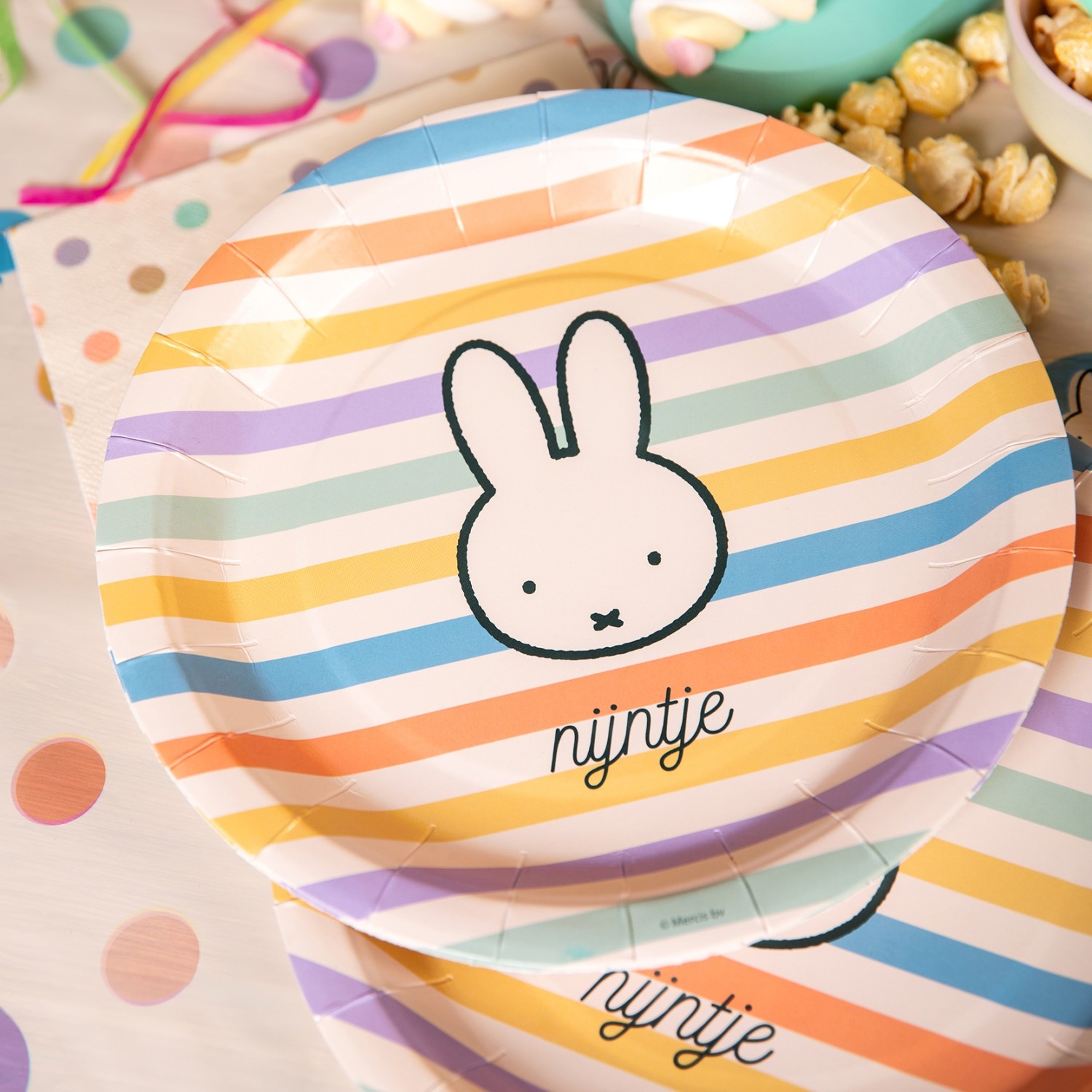 Maak je feestje compleet met deze vrolijke Nijntje papieren borden! Perfect voor kinderfeestjes of andere gezellige bijeenkomsten waar Nijntje een glimlach op ieders gezicht tovert.