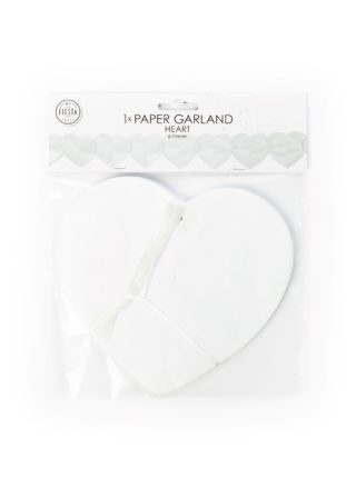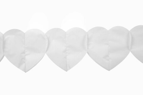 Papieren slinger in hartvorm in de kleur wit - De slinger is 6 meter lang - In de verpakking zit 1 slinger