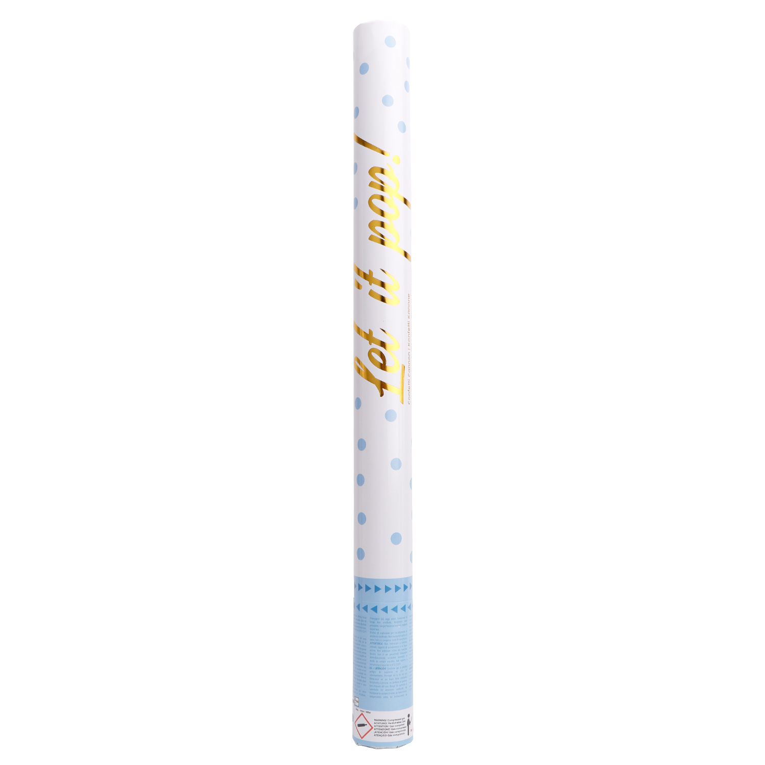Party popper lichtblauw - 60cm Iets wat altijd vrolijke gezichten oplevert zijn de confettikanonnen. Deze 60 cm lange confettikanon met blauwe papieren stippen kan worden geactiveerd door er zachtjes aan te draaien.