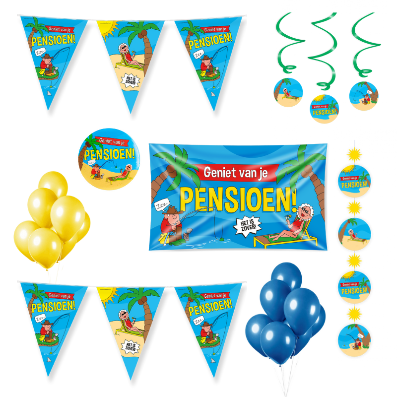 Gaat er een familielid, een vriend of een collega met pensioen? Dan is het natuurlijk leuk om dit te vieren. Met de pensioen versiering is dit een stuk leuker!