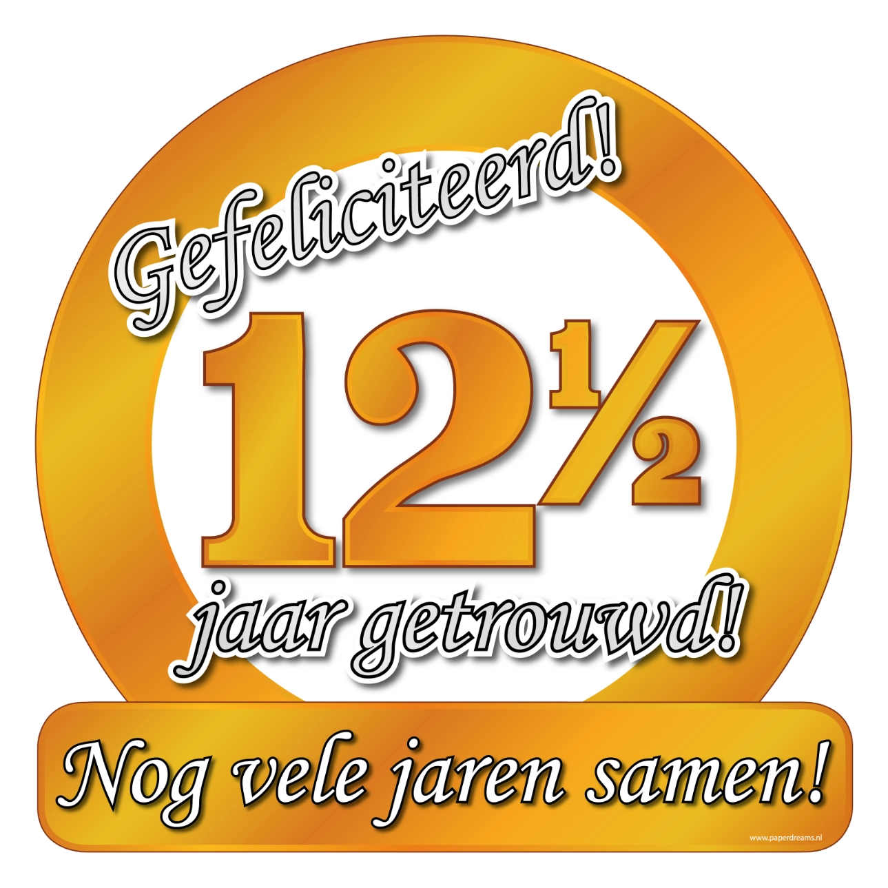 12,5 jaar getrouwd, hoera! Dat is een feestje waard want het is zeker iets om trots op te zijn. Met dit deurbord/ huldeschild laat je zien waar het bruidspaar woont.