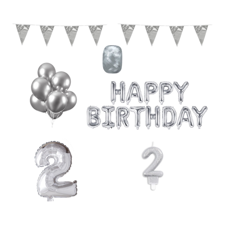 2 jaar Verjaardag Versiering Pakket zilver