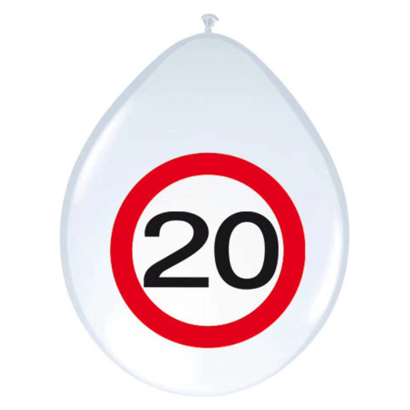 20 Jaar Verkeersbord Ballonnen - 8 stuks. Inhoud: 8 latex ballonnen. Bijvoorbeeld te gebruiken tijdens de volgende feestgelegenheid/feestgelegenheden: verjaardag, jubileum. Elke ballon is 12 inch/30 cm. Het artikel is gemaakt van latex.