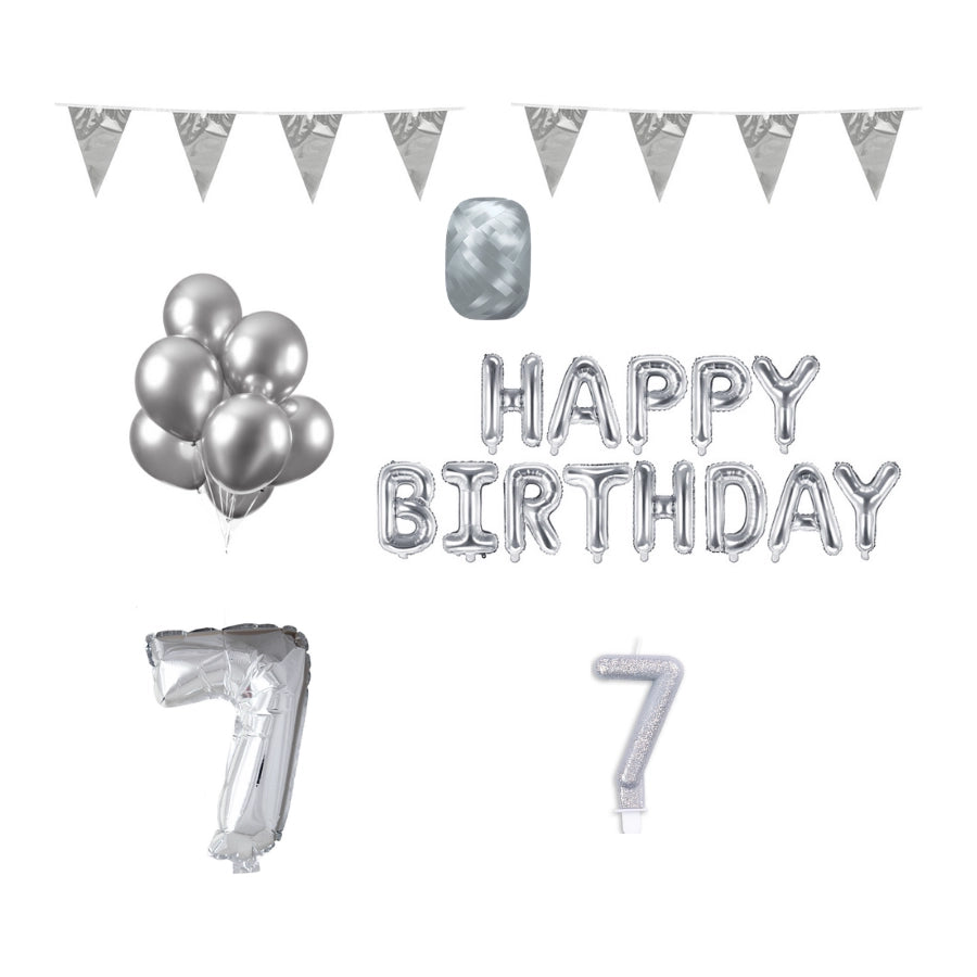 7 jaar Verjaardag Versiering Pakket zilver