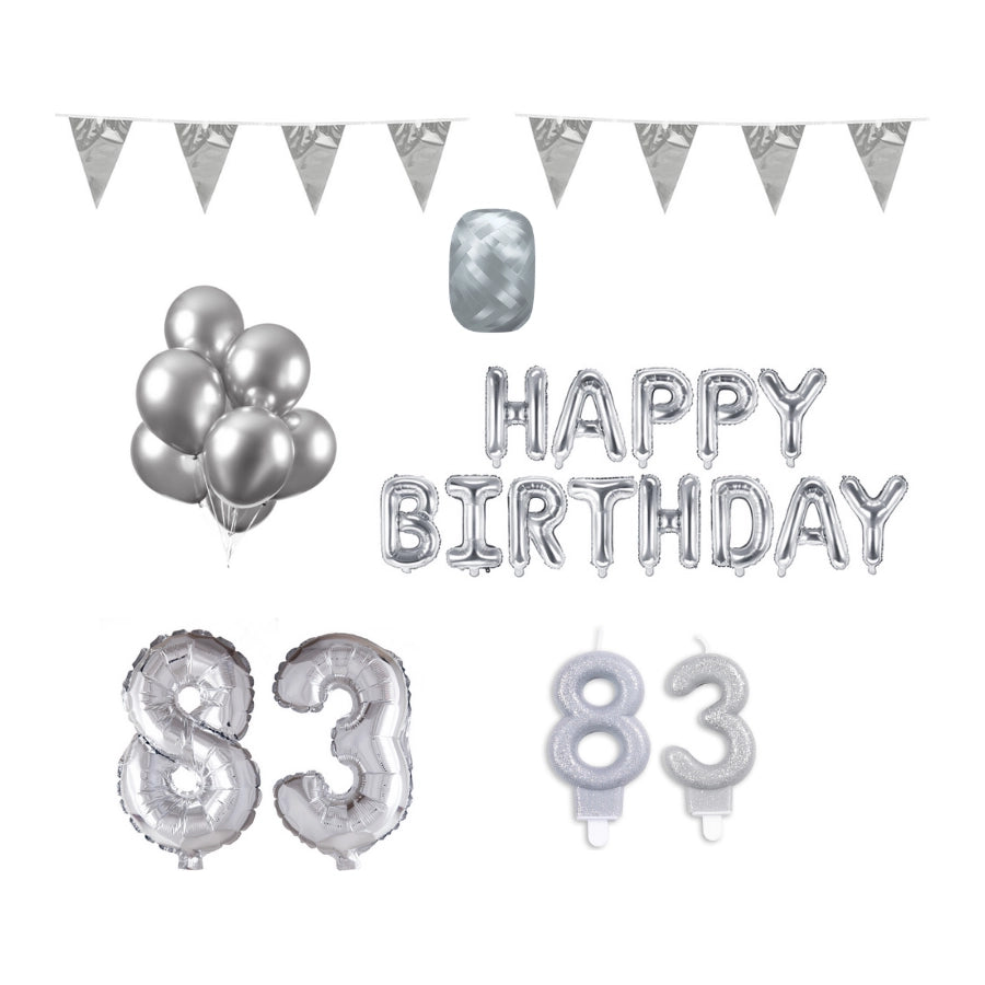 Wil je iemand echt verrassen op zijn of haar verjaardag? Met dit 83 jaar verjaardag versiering pakket zilver maak je er een onvergetelijke dag van!