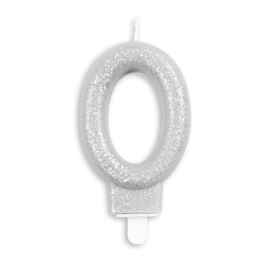 Cijfer kaars glitter zilver nr. 0