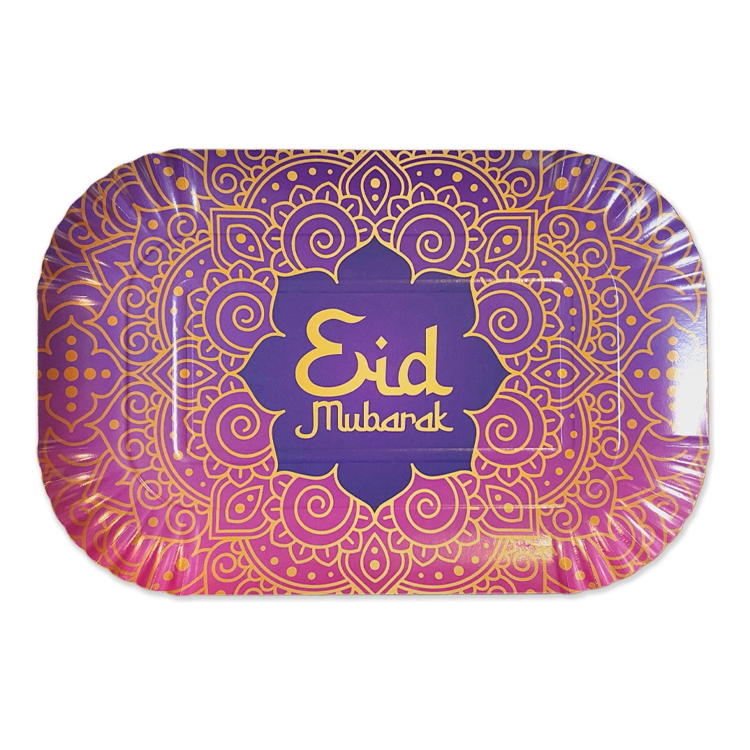 Maak je Eid-tafel compleet met deze Eid Mubarak foodtrays (29x19cm, 2 stuks)! De set bevat twee luxe designs met een stijlvolle uitstraling, ideaal voor het serveren van hapjes, zoetigheden en andere lekkernijen. De stevige papieren trays passen perfect bij de andere Eid versiering van WeFiesta en zorgen voor een feestelijke presentatie. Handig, stijlvol en eenvoudig in gebruik, perfect voor een sfeervolle Eid-viering!