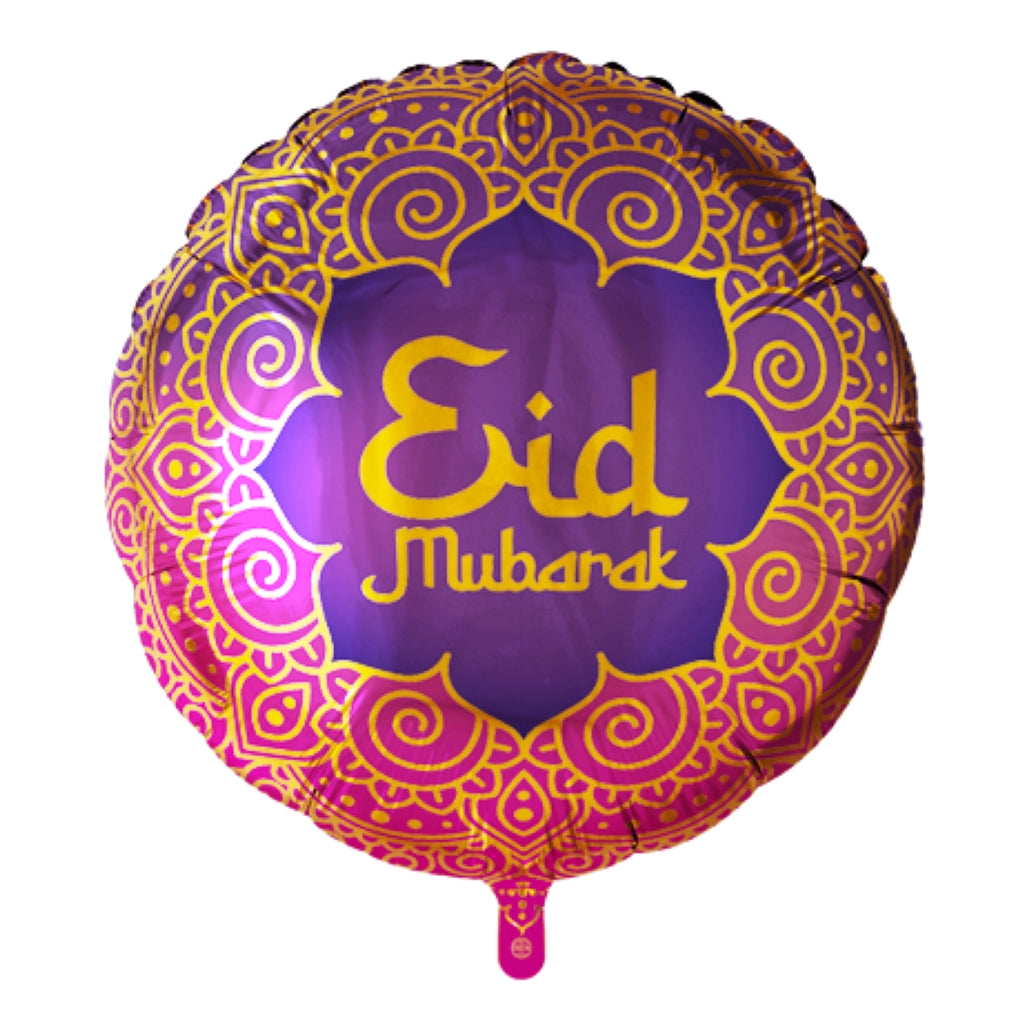 Vier Eid Mubarak in stijl met deze luxe folieballon van 46 cm! De ballon is dubbelzijdig bedrukt, waarbij elke kant een ander elegant ontwerp heeft. Perfect om een feestelijke sfeer te creëren! Combineer deze ballon met de andere Eid versiering van WeFiesta voor een prachtig geheel. De ballon wordt standaard leeg verzonden, maar kan ook gevuld met helium besteld worden voor een zwevend effect. Een schitterende decoratie voor een onvergetelijke Eid-viering!
