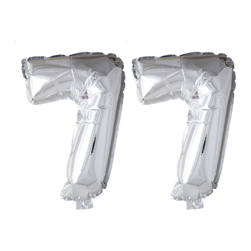 Je kunt deze cijferballon in de kleur Zilver natuurlijk super leuk gebruiken als versiering voor een verjaardag, feestje, jubileum, bruiloft en zeker ook als decoratie voor een winkel of bedrijf. Dus ben je op zoek naar een mooie Zilver 77 versiering ballon dan is dit een mooie unieke ballon.