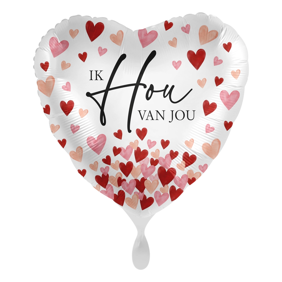 Laat je liefde spreken met de folieballon Ik hou van jou! Deze prachtige hartvormige ballon van 45 cm is versierd met rode, roze en rosékleurige hartjes en heeft elegante zwarte letters. Perfect als verrassing voor je geliefde op Valentijnsdag, een jubileum of gewoon zomaar! Gemaakt van stevig folie en geschikt voor zowel lucht- als heliumvulling.