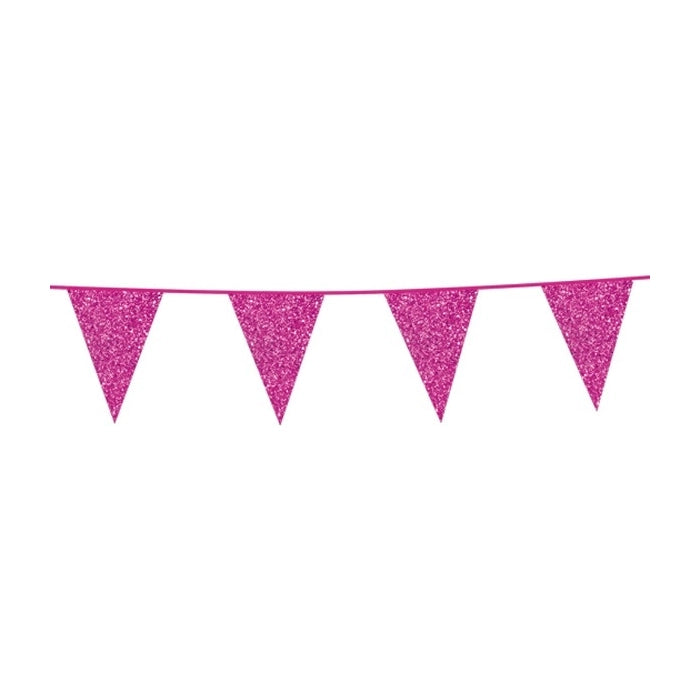 Glitter vlaggenlijn roze 6 meter (vlaggetjes 16x20cm)