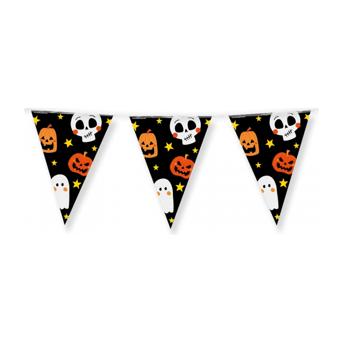 Halloween vlaggenlijn - 10 meter lang - Dubbelzijdig bedrukt - 12 vlaggen aan een lijn - Gemaakt van folie.