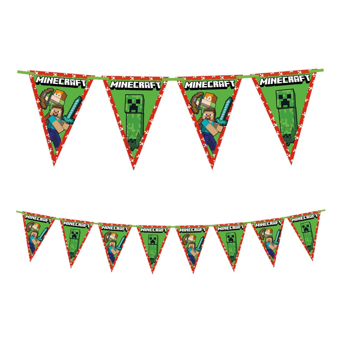 Maak van ieder kinderfeestje een stoer gamefeest met deze Minecraft vlaggenlijn. Perfect om een kamer, woonkamer of feestlocatie te versieren en direct een feestelijke sfeer te creëren voor iedere Minecraft-fan.