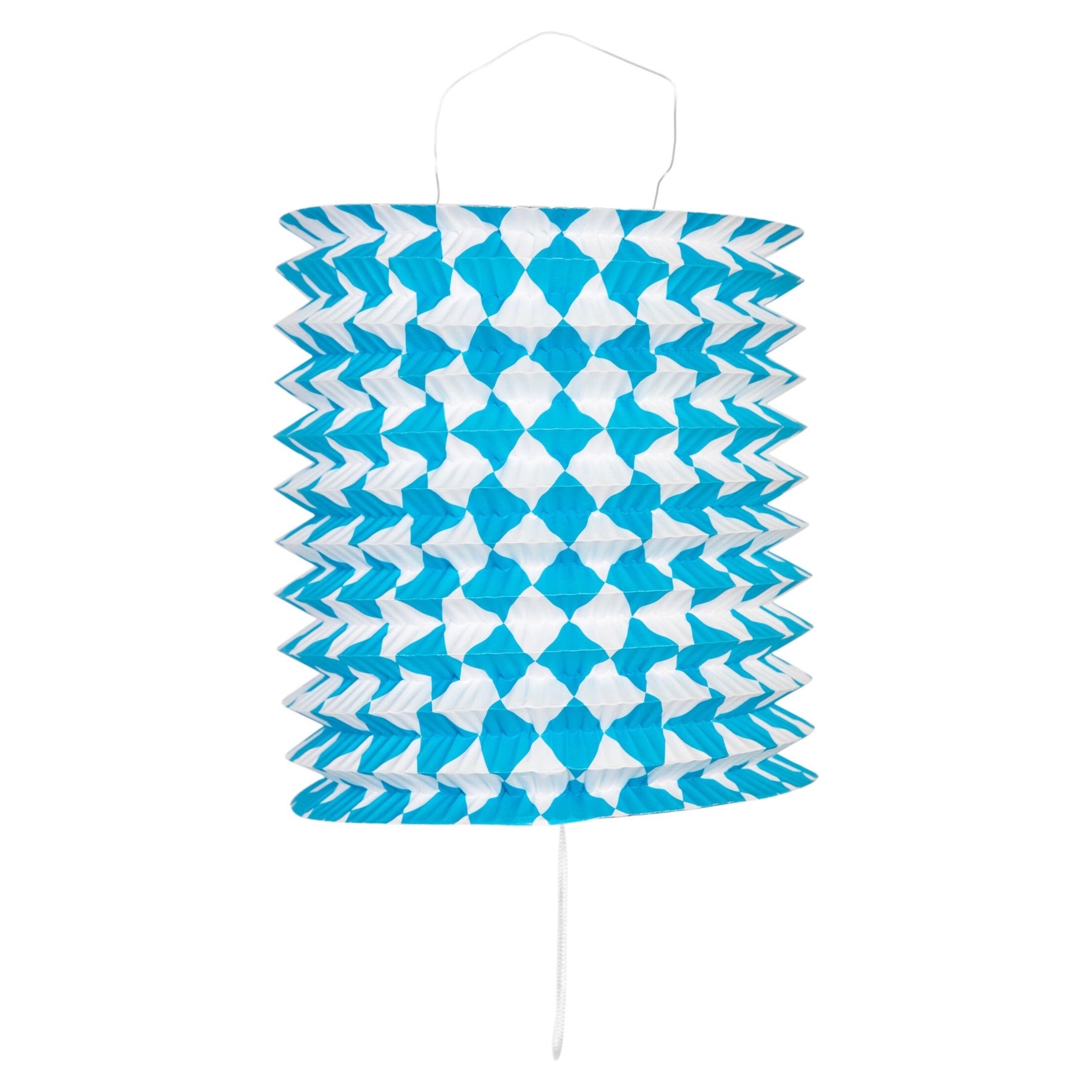 Gezellige lichtblauw/witte lampion van 16x20cm.