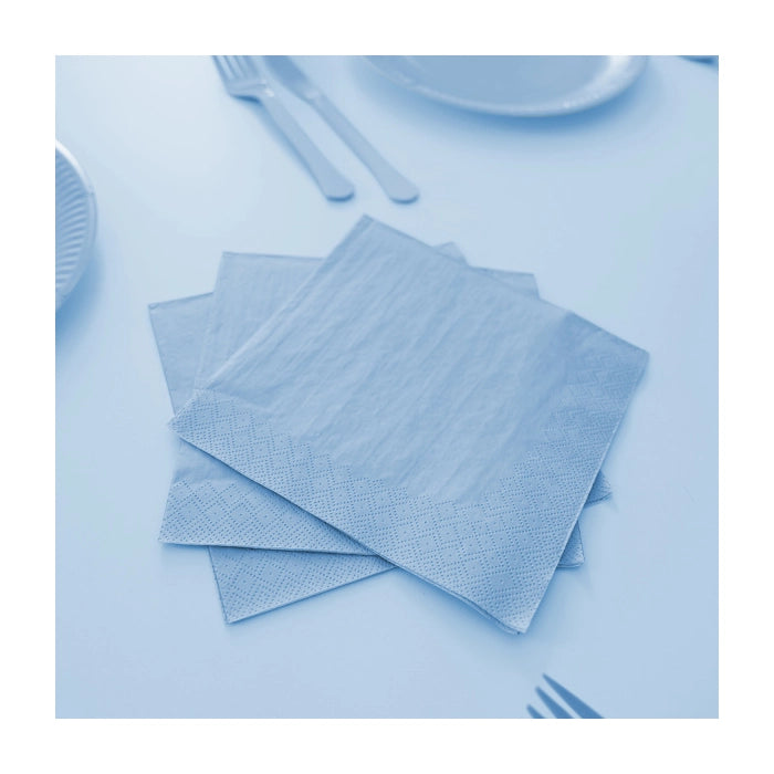 Breng kleur en stijl naar je feesttafel met deze lichtblauwe papieren servetten. Perfect voor verjaardagen, babyshowers of elke andere feestelijke gelegenheid. Deze servetten zijn gemaakt van 100% cellulose, wat zorgt voor een zachte en duurzame kwaliteit. Met een formaat van 33x33 cm en een handige verpakking van 20 stuks, ben je verzekerd van genoeg servetten voor al je gasten. De drievoudige laag biedt extra stevigheid, waardoor ze ideaal zijn voor het opvangen van morsen en het schoonmaken van kleverige vingers. Voeg een vleugje elegantie toe aan je tafeldecoratie en maak van elke maaltijd een feestje.