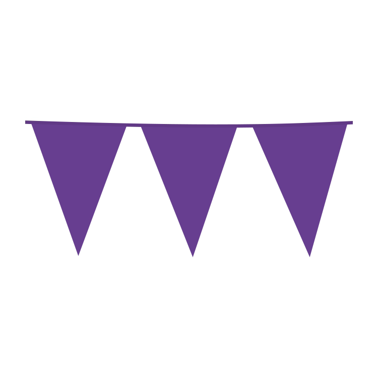 Vlaggenlijn XL in kleuren Paars. De vlaggen zijn 30 x 45 cm en geven feestelijk gevoel in grote ruimte
