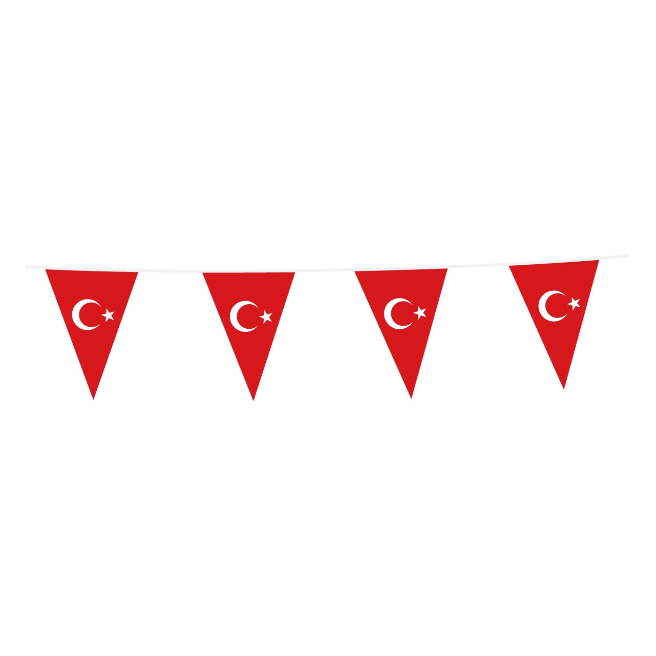 Vlaggetjes slinger in de kleuren van Turkije. Lengte 10 meter en afmeting vlaggetjes is 20 x 30 cm