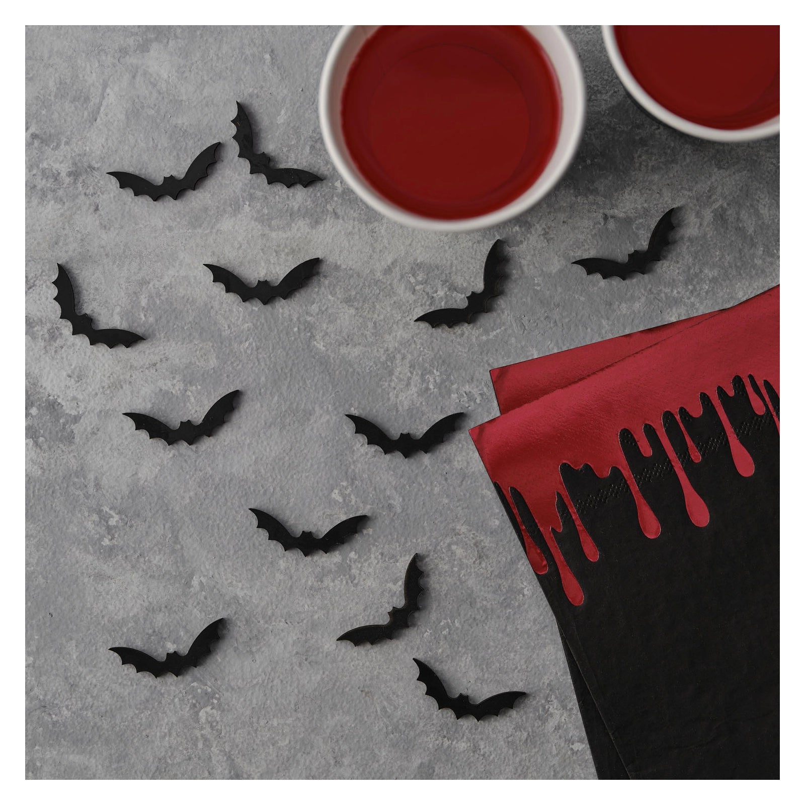 Vleermuis tafel decoratie - 24 stuks: Verspreid deze houten confetti in de vorm van een vleermuis om je gasten bang te maken! Deze zwarte vleermuisdecoratie is de perfecte finishing touch voor je Halloween-tafeldecoratie en kan keer op keer worden gebruikt