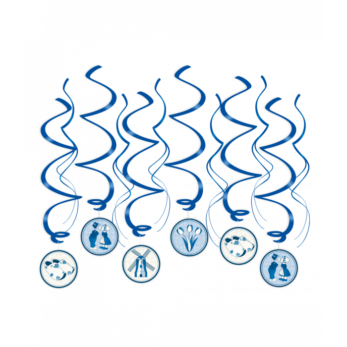 Swirl decoratie met delftsblauw/ ik hou van holland thema - In de verpakking zitten 12 swirls - Hoogte 70 cm
